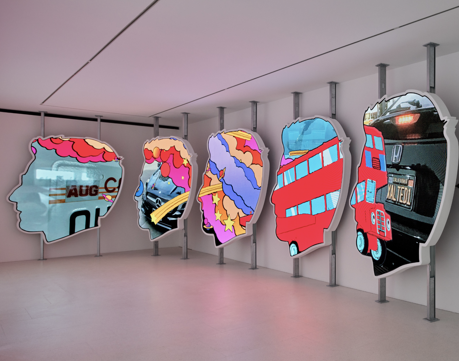 Israel’s bright, pop-infused works in painting, sculpture, and film examine California culture, identity, and the commodification of fame. His art critiques public personas while referencing Hollywood aesthetics.