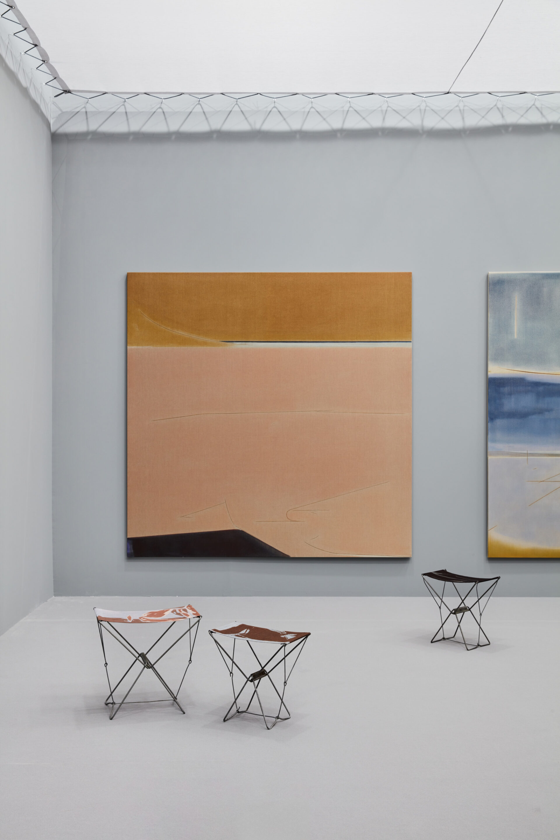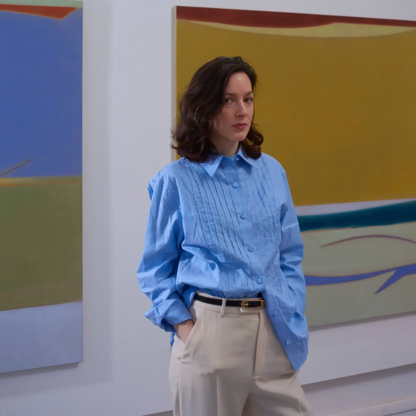 Beaufils is a contemporary painter whose abstract works explore emotional and psychological states through both figurative and abstract elements, often with a subdued color palette.