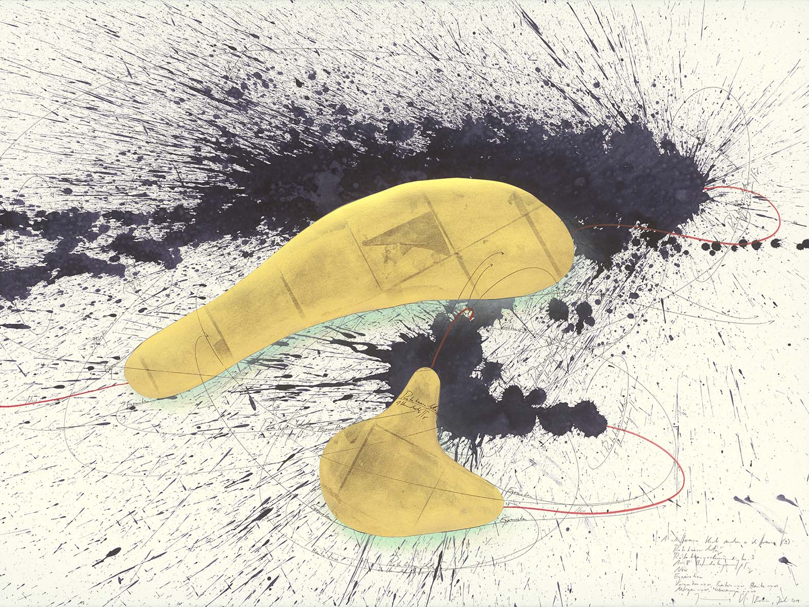 Voigt's abstract works use intricate diagrams and drawings to explore systems of thought, language, and music, blending meticulous detail with fluid gestures.