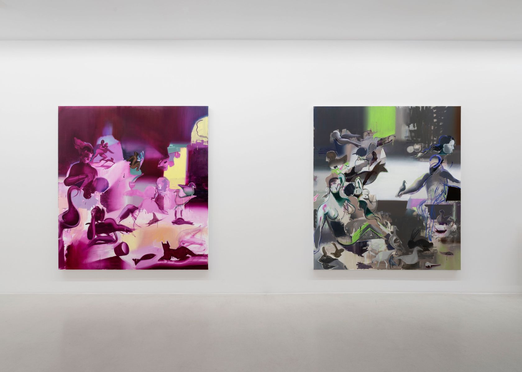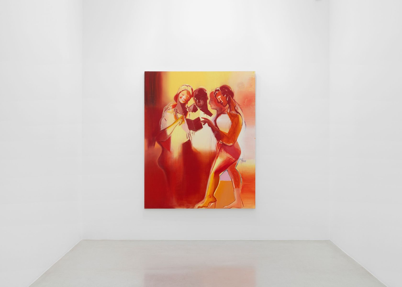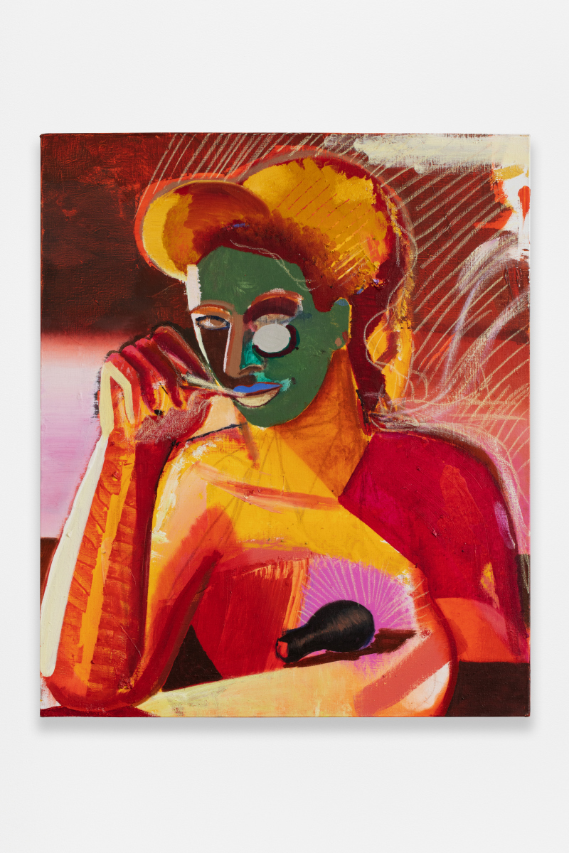 Olschbaur’s surreal, bold paintings explore themes of desire, power, and transformation, often depicted through vivid colors and dreamlike imagery.