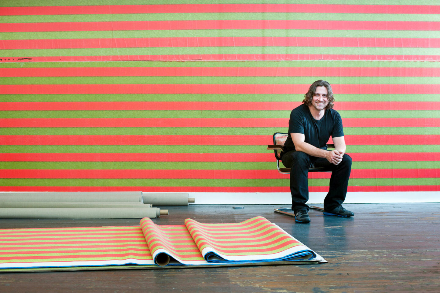 Wade Guyton is an American artist known for his large-scale, digitally printed paintings that blend traditional painting techniques with modern technology. His work often explores the relationship between digital media and physical art, utilizing tools like inkjet printers to create striking, abstract compositions.