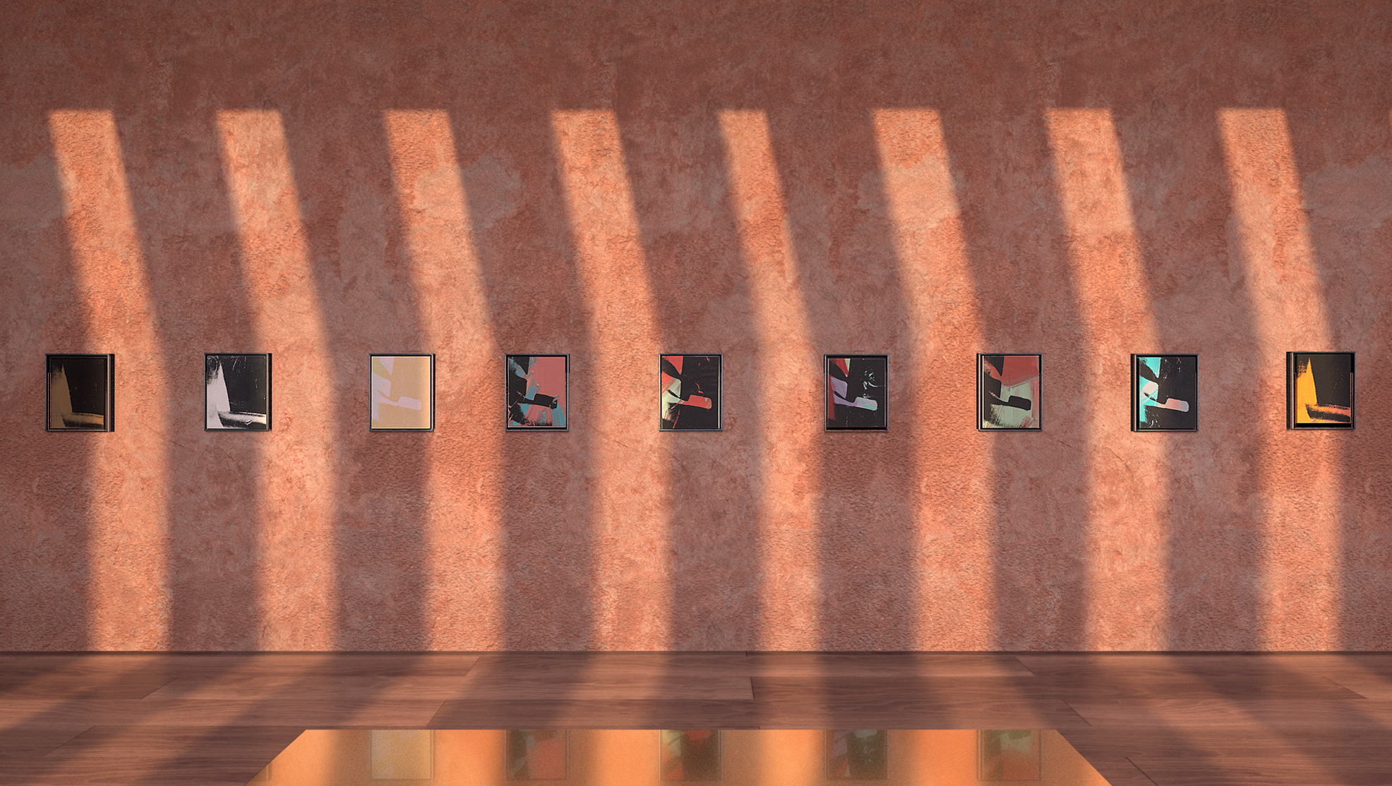 In a Mexica Casa, inspired by the architecture of Luis Barragán’s, a compilation of nine Shadow Paintings by known-to-all pop-art artist Andy Warhol –one of the artist’s most sought after series- meets the relational aesthetics of a Rirkrit Tiravanija Mirror, and a cult-of-celebrity Flat by Alex Israel, placed alongside a painting by rising star Richard Kennedy, expressing his experience as a black queer man.