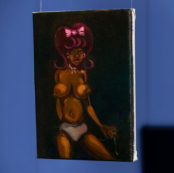 Somaya Critchlow is a British artist whose figurative paintings of women explore facets of race, sex and culture through an instinctive, stream-of-consciousness process of image making. Working mostly on a small scale, her works depict bold, curvaceous and self-possessed female characters, of her own creation, that simultaneously combine and subvert the culture expectations of race, gender and power in the history of portraiture. Imbued with dark, rich hues of browns, Payne’s grey and purples, and using sensuous brushstrokes, her heroines emerge starkly against atmospheric backdrops of thinned oils evocative of classical European painting – Velázquez, Rubens et al – and David Lynch’s hazy, seedy environs. They are self-reflective and personal, and at the same time commentary of the cultural, class and political dynamics of contemporary society.