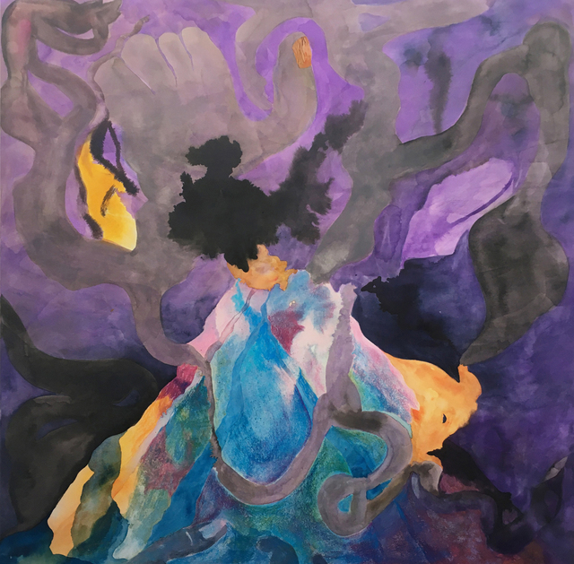 Lynette Yiadom-Boakye’s oil paintings focus on fictional figures that exist outside of specific times and places. Her paintings are rooted in traditional formal considerations such as line, color, and scale, and can be self-reflexive about the medium itself, but the subjects and the way in which the paint is handled is decidedly contemporary. Her predominantly black cast of characters often attracts attention, her work has contributed to the renaissance in painting the black figure.