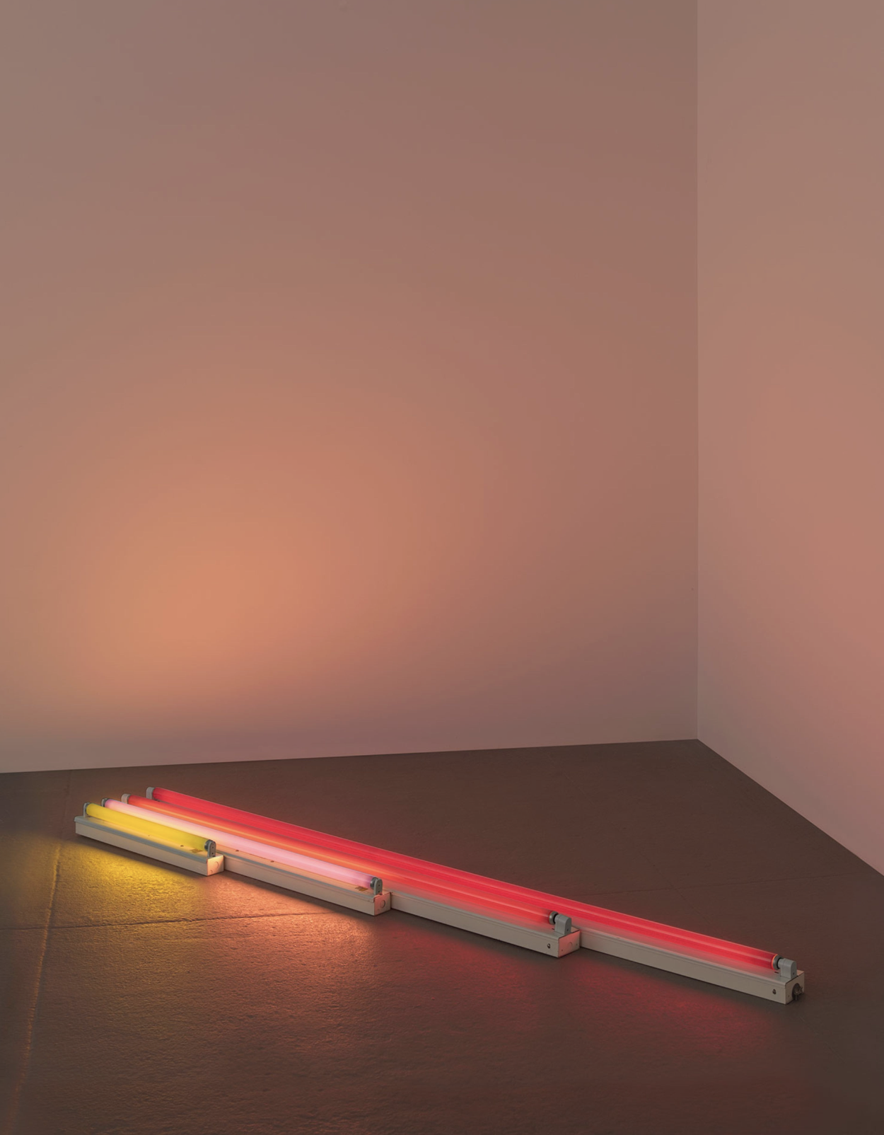 Dan Flavin (b. 1933, New York, New York – d. 1996, Riverhead, New York, United States) employed commercially produced fluorescent tubes to create installations defined by colour and spatial configuration. His work focuses on the physical properties of light and its ability to articulate architectural space.