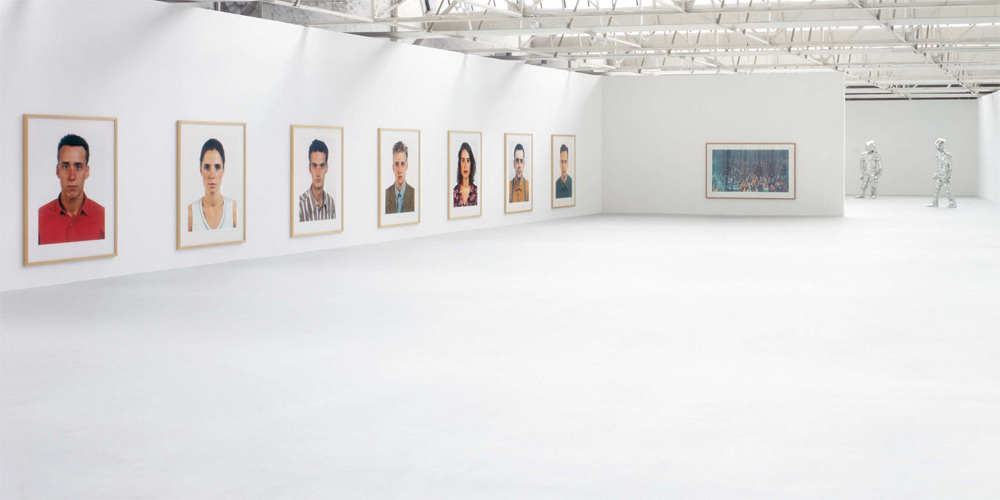 Thomas Ruff Portraits (left); Andreas Gursky Union Rave 1995 (middle). Image courtesy of Saatchi Gallery