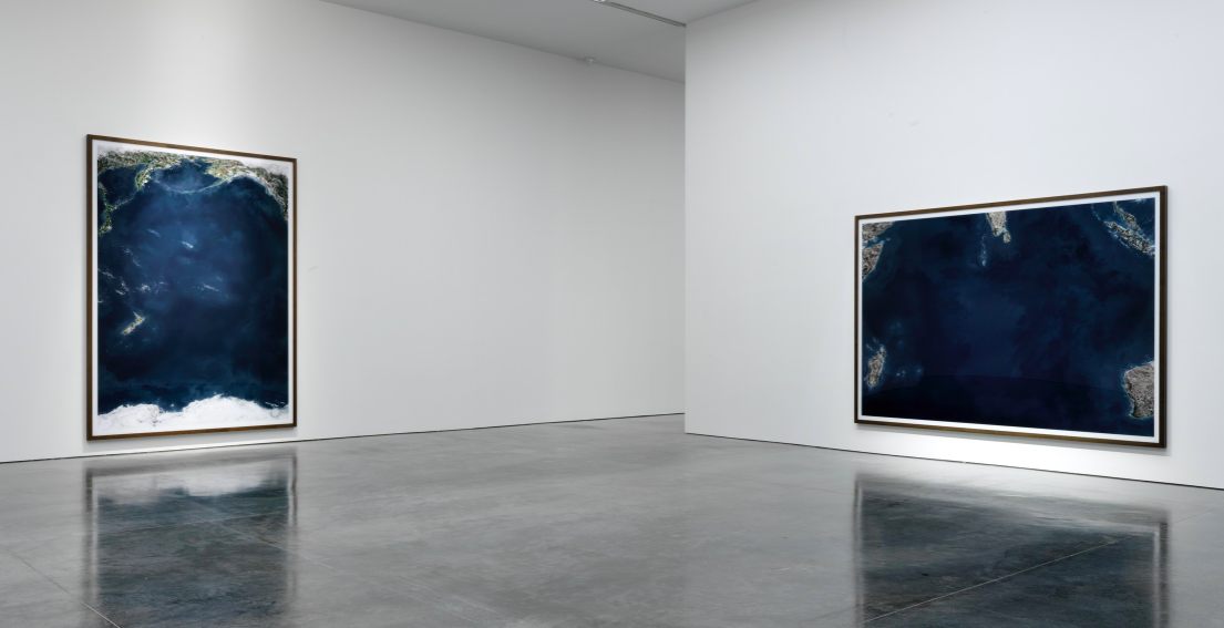Installation view. Andreas Gursky Oceans at Gagosian. Photo: Rob Mckeever. Image courtesy of Gagosian