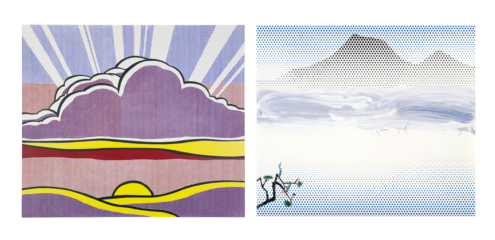 Landscapes were a recurring subject and constant fascination for Lichtenstein. They first appeared at the beginning of his career, in the mid ‘60s, and then reappeared right at the end of his career, in the ‘90s. His ‘60s landscapes saw him transform images of sunsets and seascapes into his signature Pop style – a bold reinvention of one of the most traditional subjects in art history. However, when Lichtenstein re-approached the subject of the landscape in the ‘90s, he embarked on what is known as his ‘Chinese landscapes’ series, which saw him use bold lines, Ben-Day dots, and vibrant colours to create contemporary interpretations of classical Chinese landscapes. By incorporating elements of abstraction and stylisation, Lichtenstein merged traditional Chinese aesthetics with his own artistic language, resulting in visually striking compositions that paid homage to the past while reflecting the zeitgeist of the present.