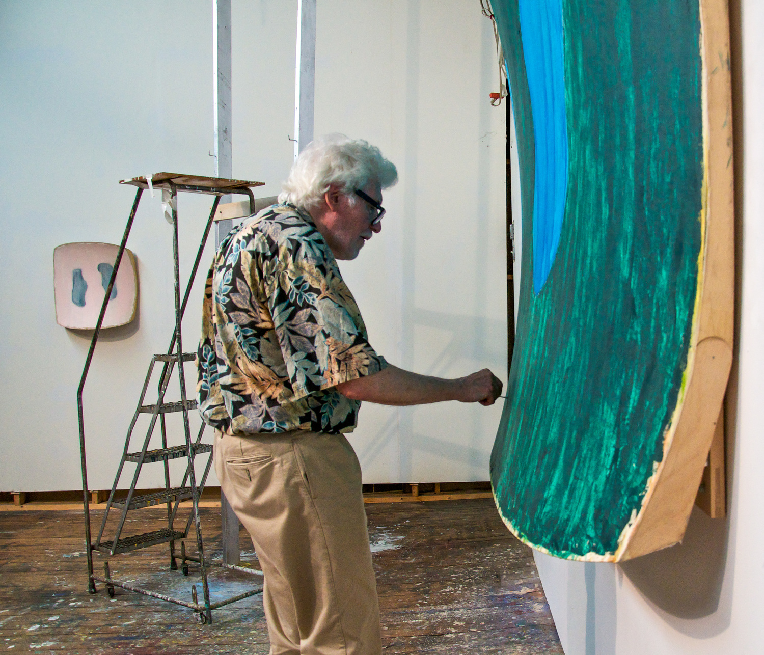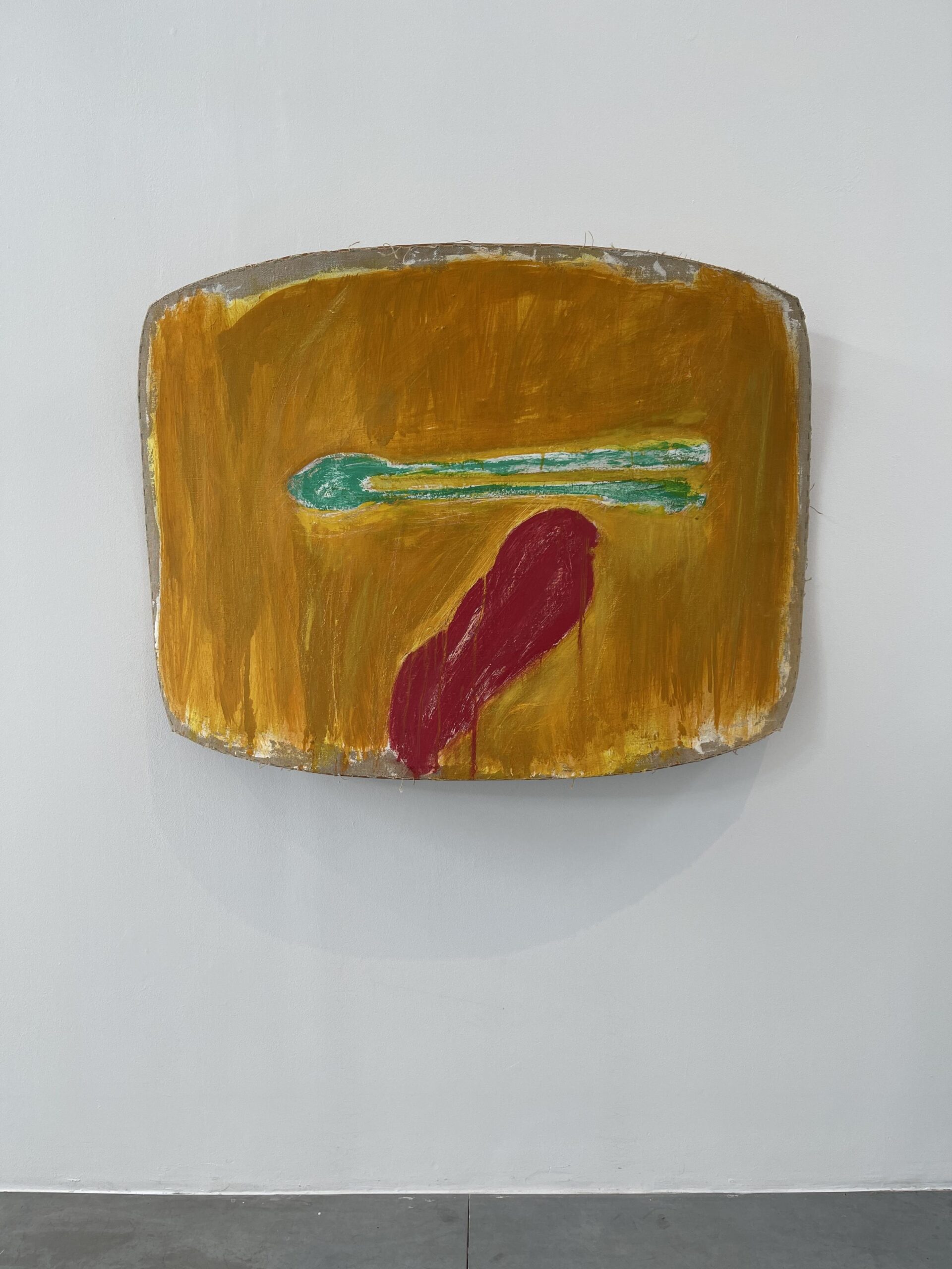 Another artist to challenge the preoccupations of the canvas was Ron Gorchov (1930 – 2020). His oil-on-linen paintings feature biomorphic shapes on vividly coloured backgrounds. The stretcher is concave, forming a saddle-like shape and bridging the gap between sculpture and abstract painting. The critic Robert Morgan said this curved shape shares more similarities to the human perspective than a hardened rectangle. Gorchov believed this to be “a more intentional form that would create a new kind of visual space.” His primal style of painting upon canvases which curved away from the wall played on human perception to challenge the flat rectangular plane usually reserved for the wall which as Donald Judd said, “determines and limits the arrangement of whatever is on or inside of it.”