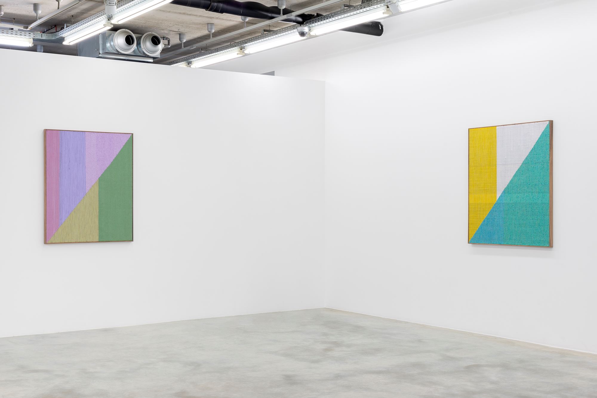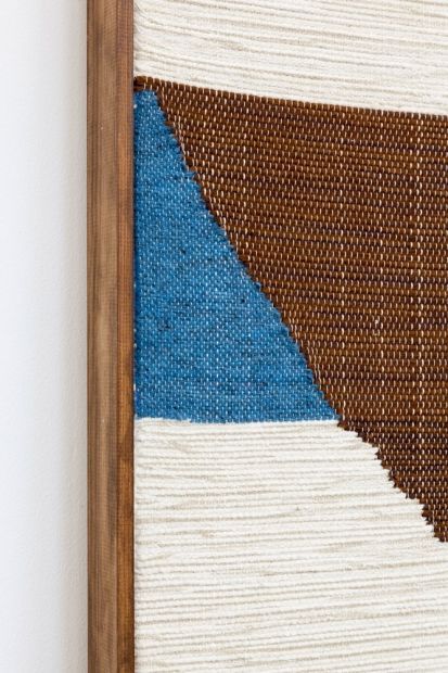 Nevertheless, the geometric rigour is just apparent. Indeed, Brent Wadden’s works might have flaws in the alignment of the counterparts or inconsistencies of shapes and lines, seldom creating irregular diagonals that are not purposely polished with a loom. This “cultivation of the imperfect” concur in giving a further expressive touch and in making the process more visible. Actually, the artist even changes looms every year so, with the objective of not to completely master his practice and preserve a genuine humility towards his own faux pas. The choice of the technique and materials responds to Wadden’s necessity of addressing the raging consumerism that deeply affects our modern society, inviting to reject the immediacy of the disposable culture: “The weavings retain a kind of energy which I feel partially comes from the laborious process of making, which is both meditative and physically demanding”. Indeed, hand-weaving is a time consuming process that deliberately does not allow Wadden to aspire to an immediate execution and, therefore, to the possibility of a mass production, and this dialogue between traditional art and Modernism remains a constant across all his work.