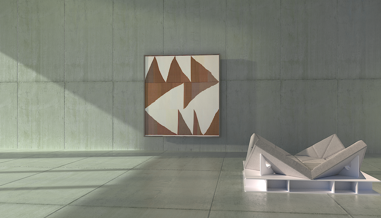 What’s Up artist Brent Wadden is acclaimed for his dazzling abstract geometric weavings, inspired by the traditional tapestry techniques of folk artists in his native NovaScotia, Bauhaus tapestries, and the quilts of Gee’s Bend, an African American hamlet along the Alabama River. The Berlin-based artist aims to challenge the medium hierarchy in the fine arts, acknowledging that textiles are often not respected as art.