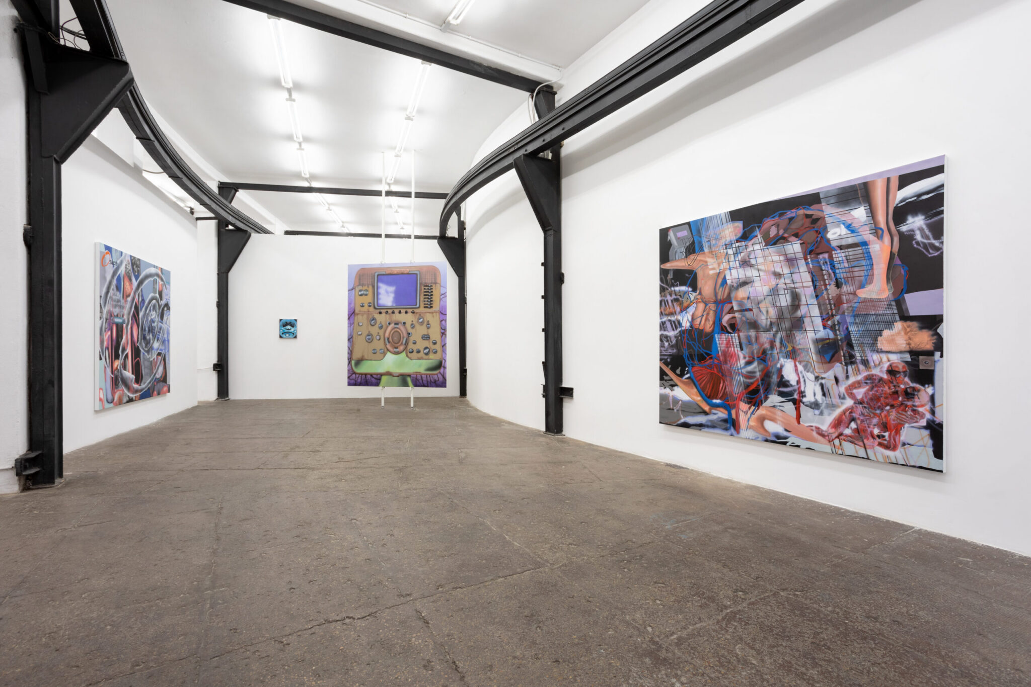 Gabrielė Adomaitytė: My work is driven by accumulation. Images come broken up, indexed, or re-coded, like data in circulation. I let them coexist rather than creating painterly scenic views. The compositions are non-hierarchical. Everything happens all at once, so the body is decentralised. Painting evolves as a systematised totality.