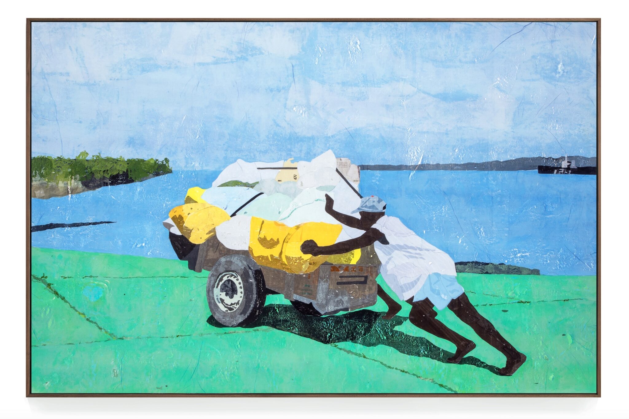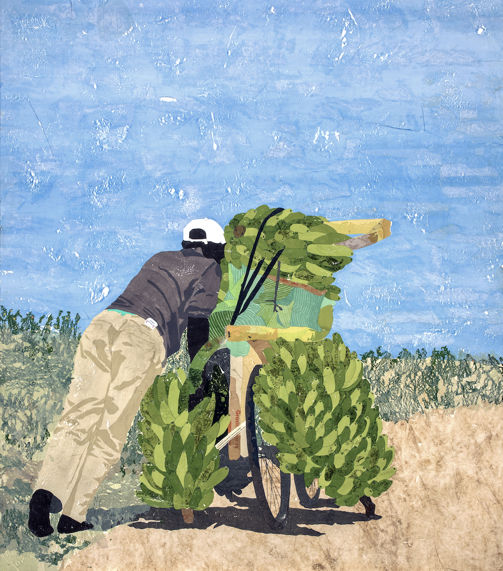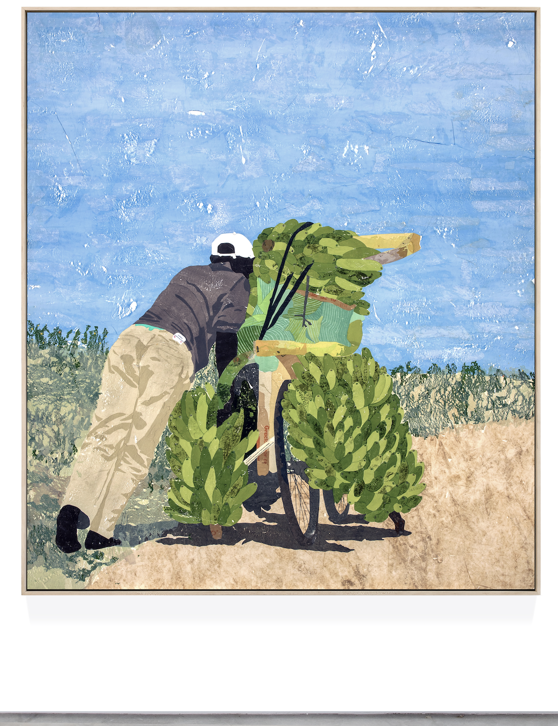 The paintings in my last show Burdened at Sean Kelly were all created in my studio in Tulum, where I have been spending the lockdown. With Covid-19 travel restrictions, I was forced to pivot and source images from the internet, drawing inspiration from photographs of people performing their daily tasks and engaged in labor critical to their survival, whether it be collecting refuse, transporting fruit and other goods, or recycling oil. My desire in this new body of work is to address the economics of labor through the medium of plastic and how it passes through the hands of individuals at every level of society.