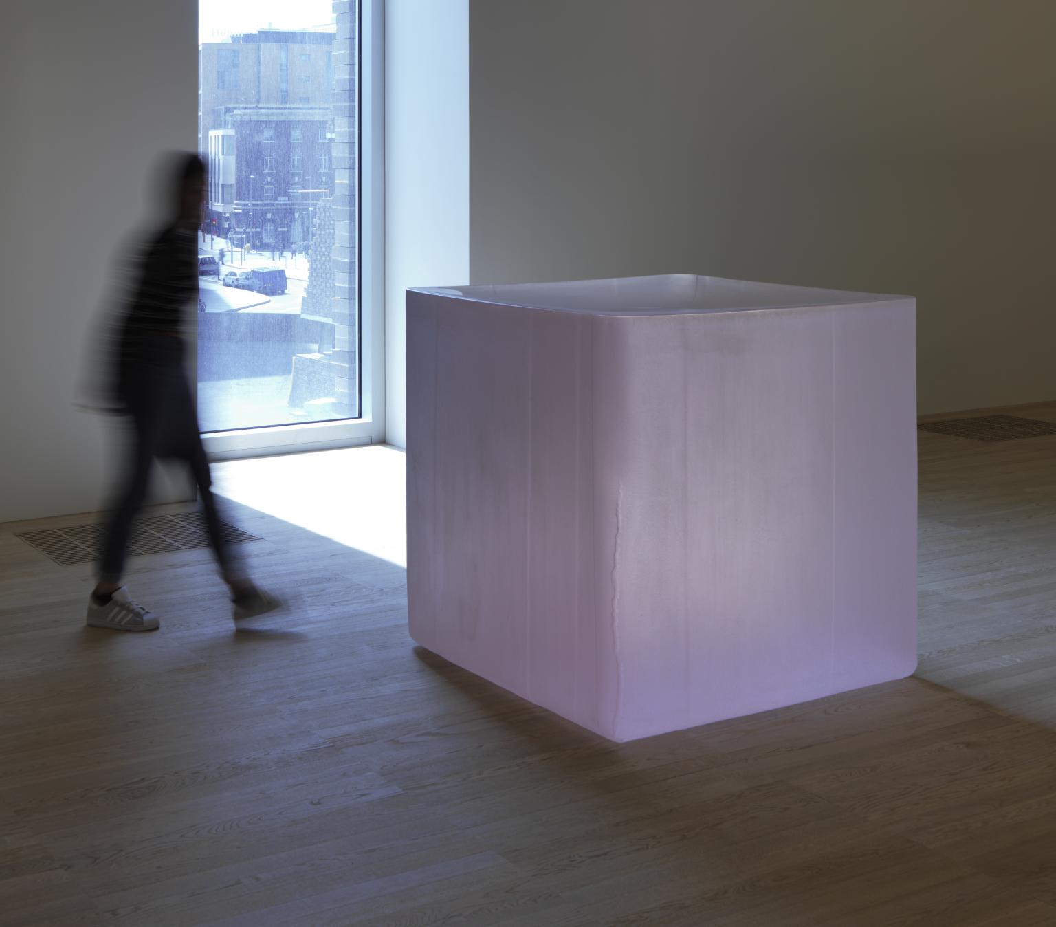 Adopting the visual languages of science and Minimalism, Ann Veronica Janssens’s work suggests that all perception is fragile at best. Creating installations, projections, immersive environments, urban interventions, and sculptures, Janssens explores the sensory experience of reality. Space, distribution of light, radiant colour, and translucent or reflective surfaces all serve to reveal the instability of our perception of time and space. She explores properties of matter: gloss, lightness, transparency, fluidity) and physical phenomena: reflection, refraction, perspective, balance, waves in order to destabilise ideas about materiality.