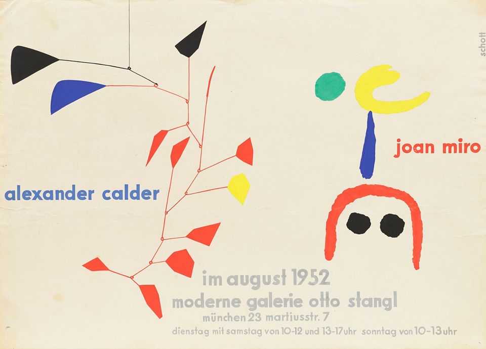 In addition to a mutual admiration and a close friendship Calder and Miró shared many artistic principles, such as the usage of pure colours and abstract forms. During the 1930s, they exhibited together in many group shows, the first one being in 1932, followed by a larger group exhibition in 1933. Most importantly, in 1937, the Spanish Republican government commanded both artists to create a set of new works for the Spanish Pavilion at the World Fair in Paris, where their works were exhibited next to Pablo Picasso’s legendary Guernica. Their synergy was so evident that Calder’s mobiles were described in 1936 by The New York Times as “living Miró abstractions” and in 1937, they had their first joint exhibition at the Honolulu Academy of Arts.