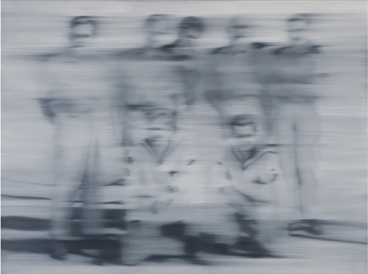 As seen in his 1966 work ‘Sailors’, Richter would take a photograph, translate it onto the canvas in paint with cool, monochromatic tones, and blurring the image to give the appearance of it being out-of-focus and in motion. Richter would state that his obsession with blurring images comes from a desire to “make everything equally important and equally unimportant.”