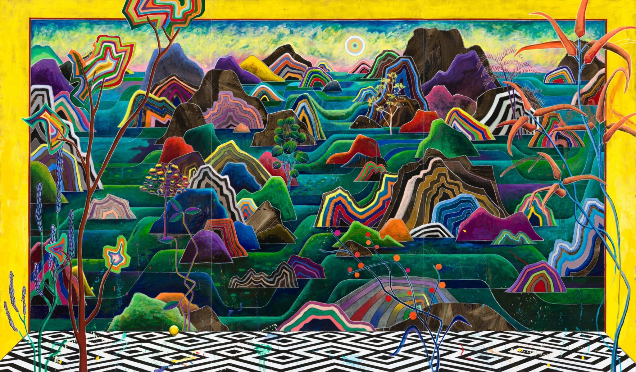 Christian Achenbach, Kreola, 2024. Oil, acrylics & pastel on canvas, 200 x 510 cm (triptych). Image courtesy of Galerie Isa.