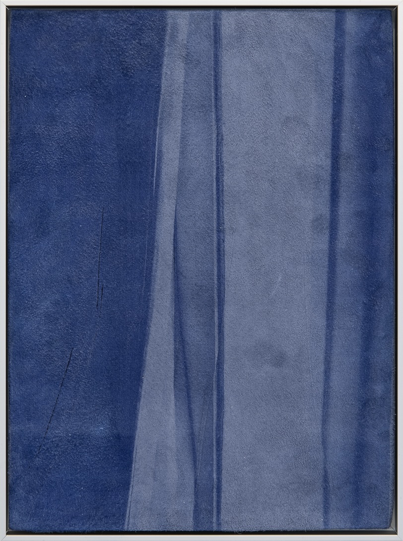 Poppy Jones, A Curtain (sway), 2021. Oil and watercolour on suede, aluminium frame.