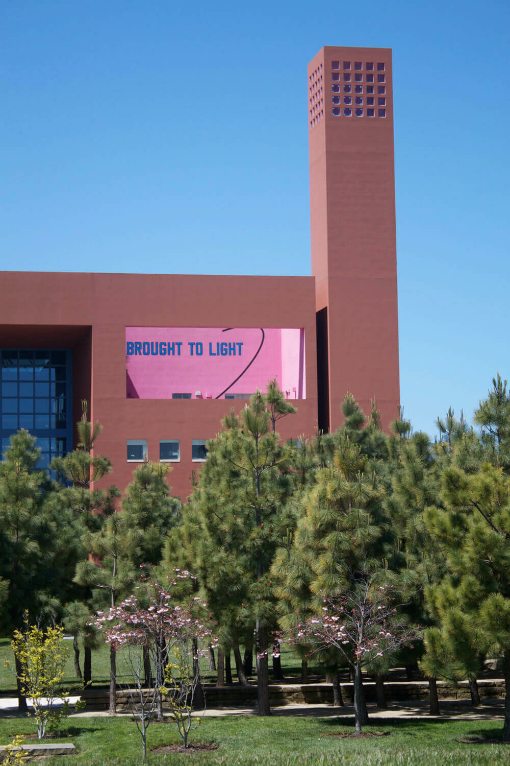 In BROUGHT TO LIGHT / SUBSEQUENTLY ALLOWED TO DISSIPATE (2009), created for the University of California, San Francisco, Weiner staged a layered interplay between revelation and disappearance. The rooftop phrase BROUGHT TO LIGHT, visible from surrounding streets, was paired with rusting steel disks on the plaza below bearing SUBSEQUENTLY ALLOWED TO DISSIPATE. Together, they formed a meditation on temporality, presence, and the shifting states of knowledge.
