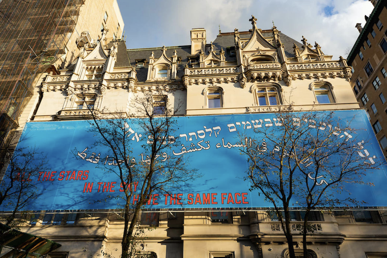 His ability to adapt language to the specificity of place was also evident in ALL THE STARS IN THE SKY HAVE THE SAME FACE (2020–21), commissioned for the façade of the Jewish Museum in New York. Rendered in English, Arabic, and Hebrew, the work operated simultaneously as a poetic assertion of shared humanity and as a subtle meditation on translation, difference, and commonality.