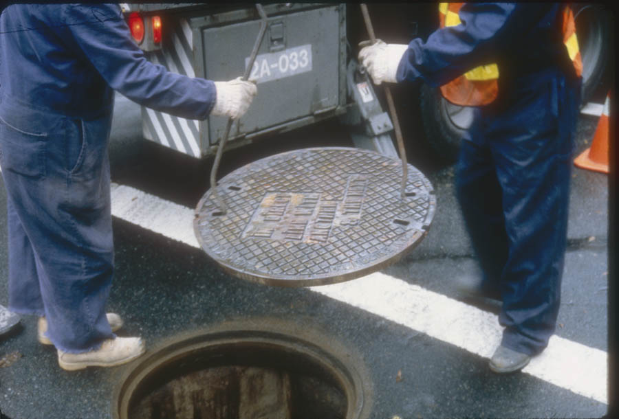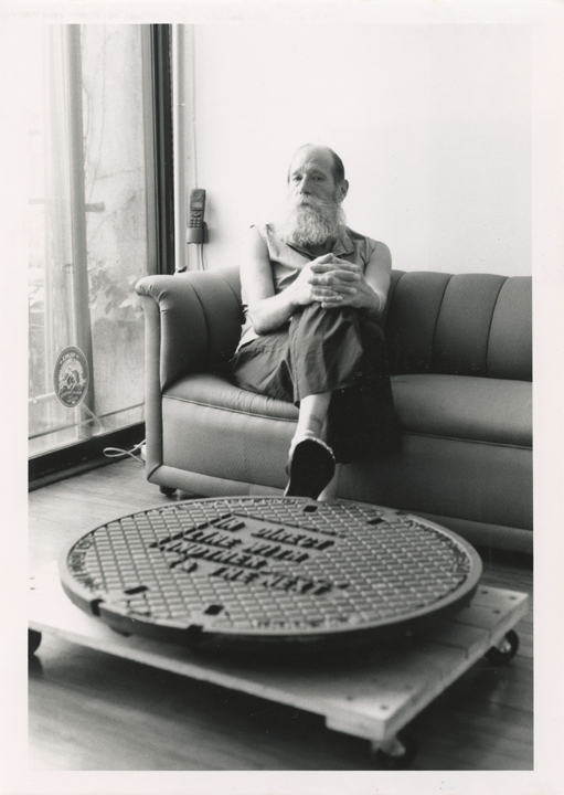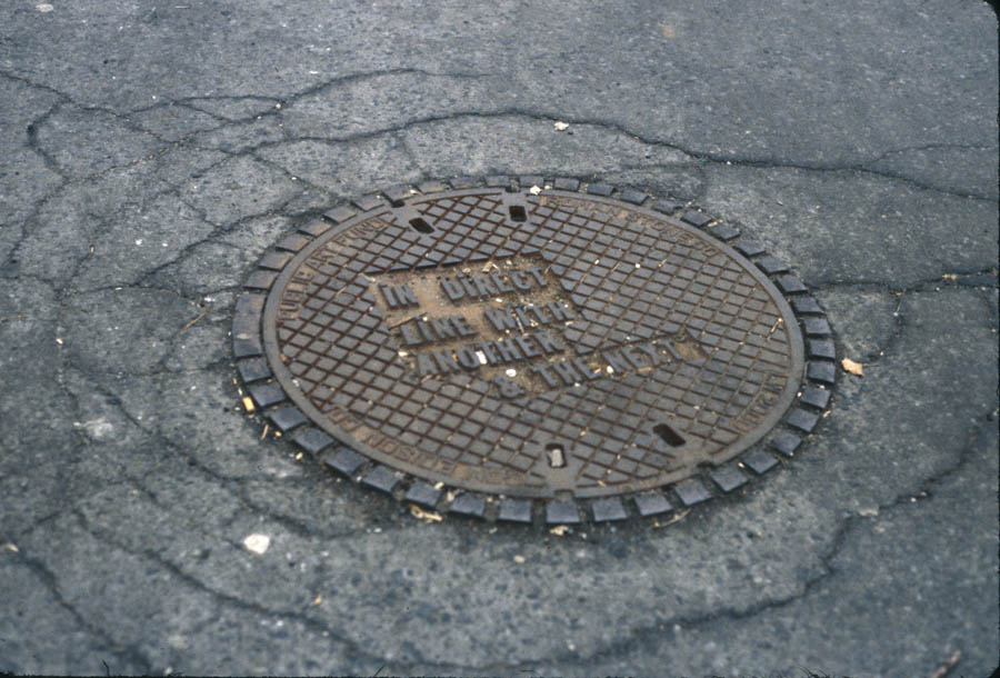 In 2000, working with the Public Art Fund in New York, Weiner produced IN DIRECT LINE WITH ANOTHER & THE NEXT, a work literally embedded into the city’s infrastructure. Nineteen functional manhole covers were cast with the phrase, distributing the piece across the urban grid so that it was encountered unexpectedly in the course of daily movement.