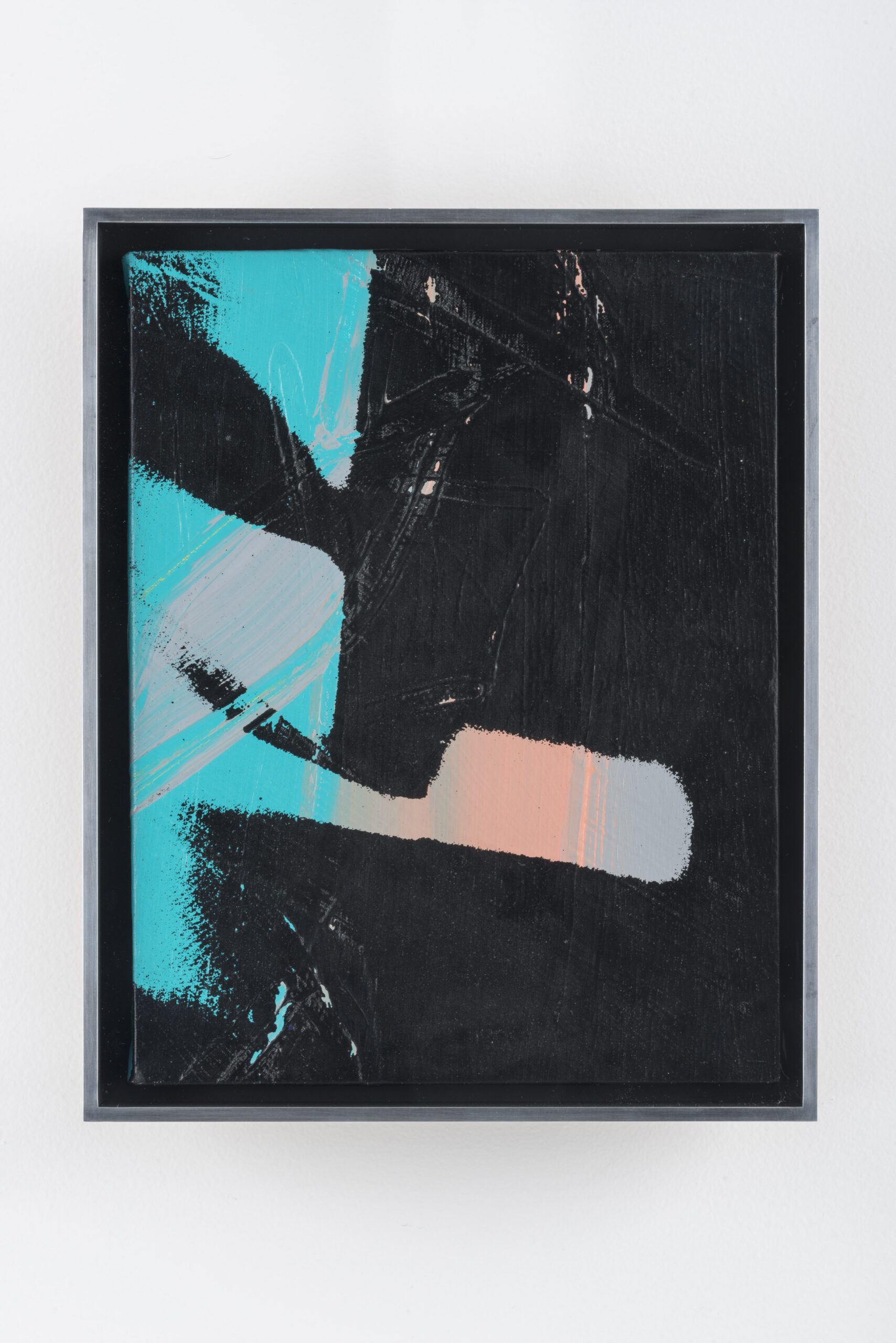 Conceived as one painting in multiple parts, with the final number of canvases being determined by the dimensions of an exhibition space, these 102 silkscreened canvas panels formalized the artist’s earlier explorations of abstraction seen the previous year in the Oxidation, Rorschach, and Camouflage paintings. In contrast to the Oxidation or Piss paintings, achieved through a process of staining in which a canvas coated in copper reacted to the acidity of urine spilled or dripped on it, the Shadows panels are silkscreened canvases.